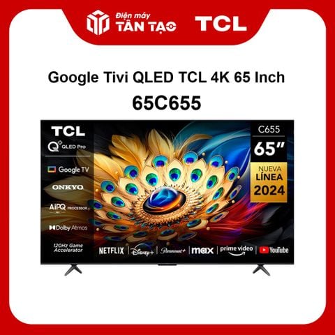 Google Tivi TCL QLED 4K 65 Inch 65C655 là phiên bản có màn hình lớn 65 inch ấn tượng thuộc series C655 được TCL ra mắt trong năm 2024. Sản phẩm được nhà sản xuất trang bị bộ xử lý AiPQ Pro thông minh, hệ thống loa 2.1 kênh chất lượng và hàng loạt công nghệ nghe nhìn đẳng cấp, hứa hẹn sẽ mang đến những phút giây thư giãn tại gia cực kỳ chất lượng cho mọi khách hàng.