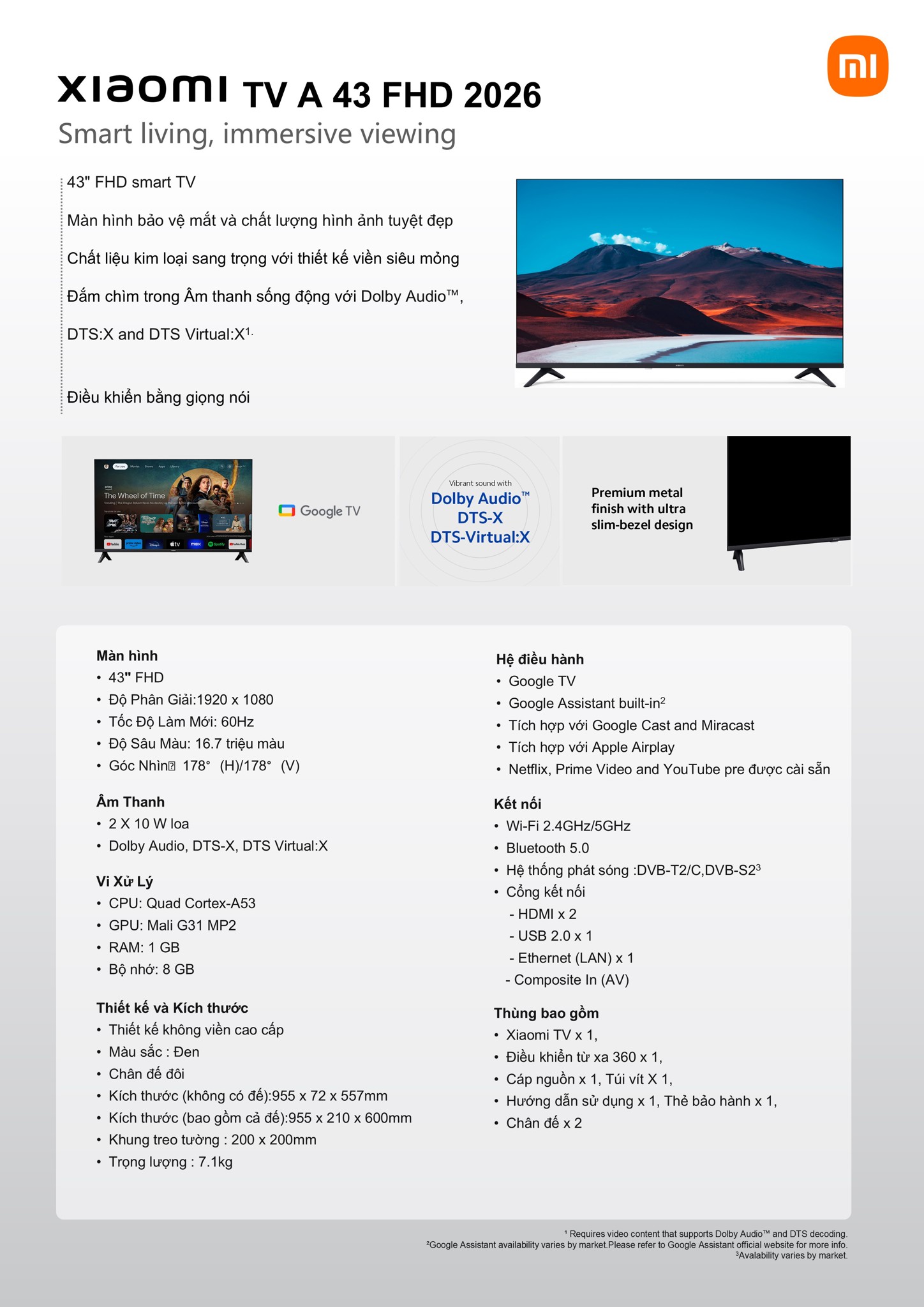Google Tivi Xiaomi A 4K 43 inch L43MB-AUSEA