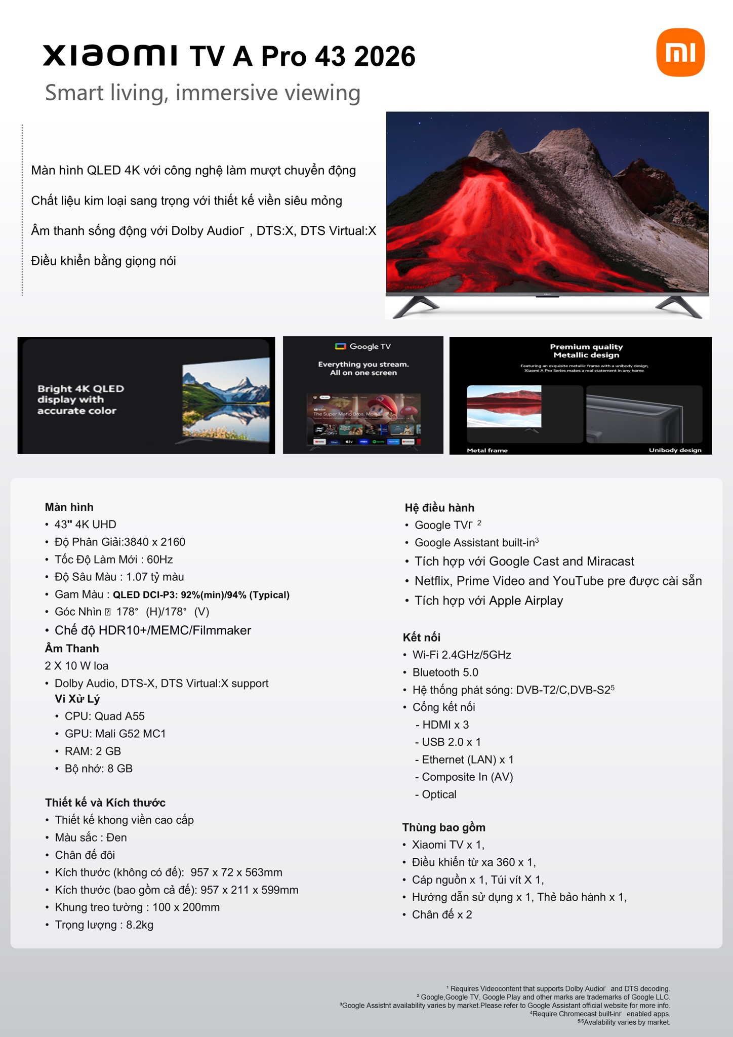 Google Tivi Xiaomi A Pro QLED 4K 43 inch L43MB-APSEA