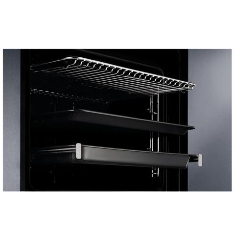 Lò nướng Electrolux KODGH70TXA có khoang lò bên trong được tráng men sáng bóng, dễ lau chùi, có đèn trong khoang lò giúp bạn theo dõi quá trình nấu bên trong dễ dàng mà không cần mở cửa lò. Bên trong lò Electrolux KODGH70TXA gồm có 2 giá đỡ 2 bên để bỏ khay nướng vào làm bằng inox không gỉ sét và không độc hại, bên trên là hệ thống thanh nhiệt dày đặc, bên trong là quạt đối lưu và cuối cùng là đèn chiếu sáng giúp người sử dụng có thể nhìn thấy thực phẩm trong quá trình chế biến.