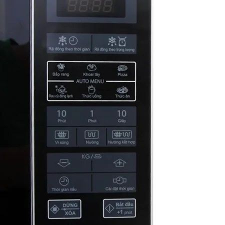 Bảng điều khiển nút nhấn điện tử có hướng dẫn tiếng Việt cùng màn hình LED rõ ràng dễ quan sát giúp bạn thao tác với lò nhanh chóng.