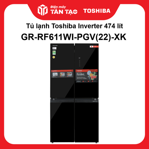 - Tủ lạnh Toshiba Inverter 474 lít Multi Door GR-RF611WI-PGV(22)-XK được thiết kế theo kiểu tủ multi door với nhiều ngăn kéo linh hoạt, dễ dàng phân loại thực phẩm. Mặt kính cường lực màu đen sang trọng, chịu lực tốt, độ bền cao cùng bảng điều khiển cảm ứng bên ngoài cửa tủ tiện lợi.